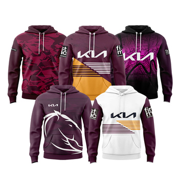 Sublimación Broncos Caps Hombre Mujer Niños Nrl Fútbol Jerseys Pantalones cortos Conjuntos Polos Entrenamiento Singlets Hoodi Rugby League Nrl
